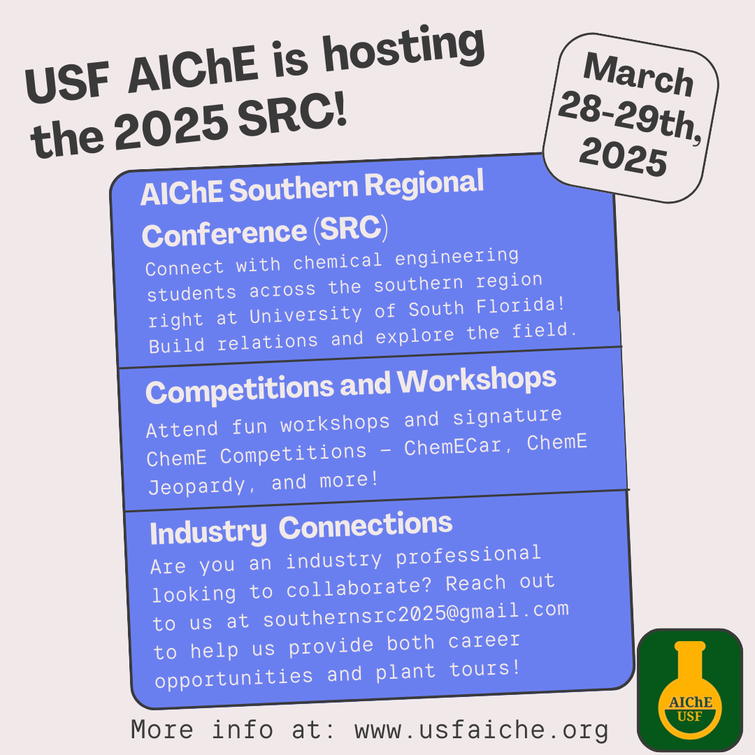 We are thrilled that our hard work will bring together 300+ chemical engineering students, faculty, and industry professionals from across the southern region to engage in workshops, technical presentations, and networking opportunities.